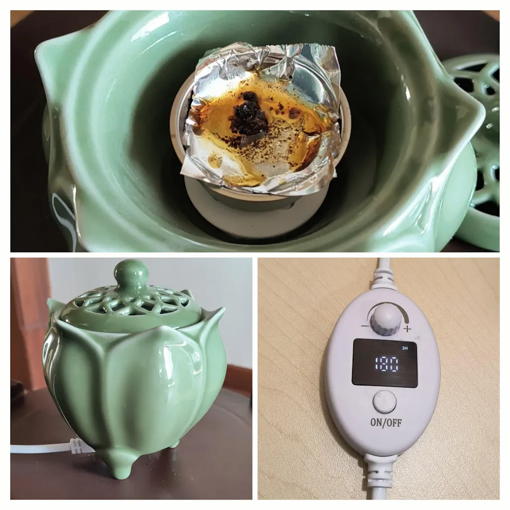 Electric incense heaters offer another valuable feature in that you can "pause" your incense burning and continue burning the same piece or a different material at a future time.